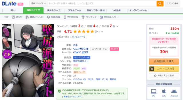 DLsiteは20年以上実績のある合法の電子書籍サイトです。