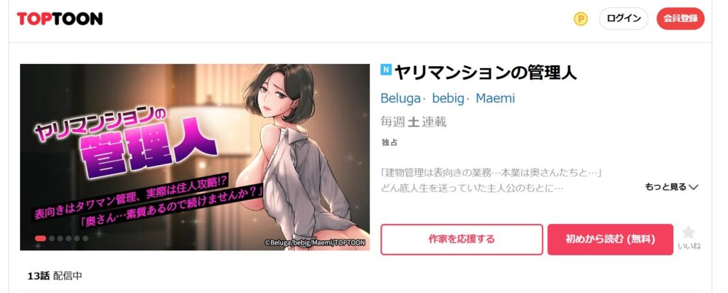 つまり、漫画【ヤリマンションの管理人】を読むならTOPTOONの利用一択